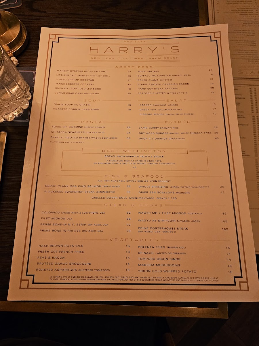 Welcome to Harry's, a distinguished culinary gem in West Palm Beach that promises an exceptional dining experience. Located at 384 S Rosemary Ave, this restaurant is a blend of elegance and top-notch service, making it a must-visit. The menu at Harry's features an impressive array of dishes that cater to every palate. Start your meal with delicious Harry's Salad or indulge in an exquisite Cedar Plank Ora King Salmon for a taste of the ocean’s best. For a true indulgence, the Dry Aged NY Strip Steak is a standout, praised for its extraordinary flavor and tenderness. Another must-try is their renowned Beef Wellington, a dish that has garnered rave reviews. Pair your meal with unique cocktails or their extensive wine selection for the ultimate experience. With a chic ambiance and attentive service, Harry's is a culinary destination you shouldn't miss.